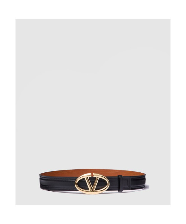 • 브이로고 볼드 에디션 유광 송아지 가죽 벨트