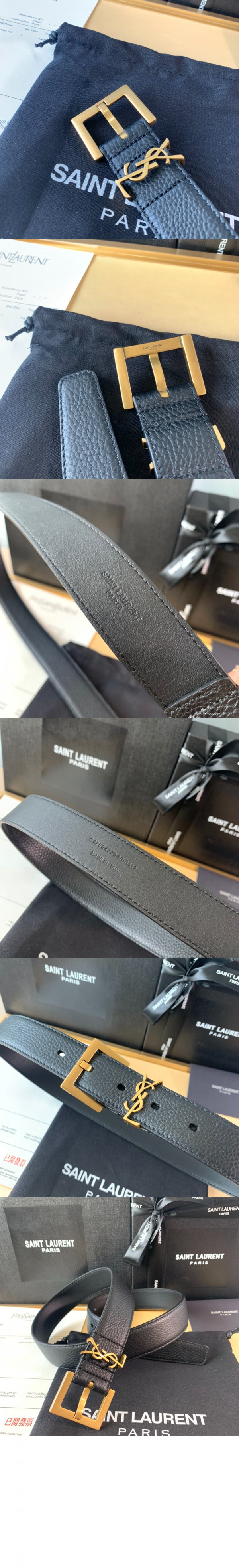 • 생로랑 스퀘어 버클을 장식한 그레인 가죽 소재의 벨트 634437