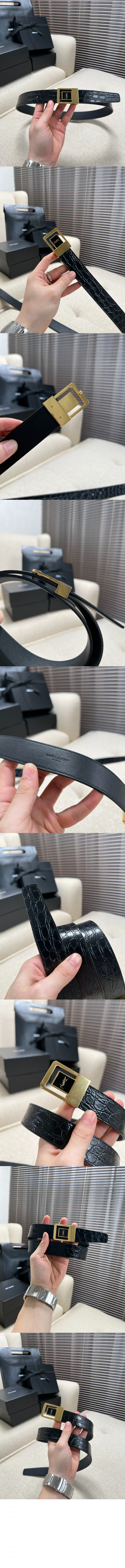 생로랑 크로커다일 엠보스드 가죽 소재의 LA 66 버클 벨트 7325561