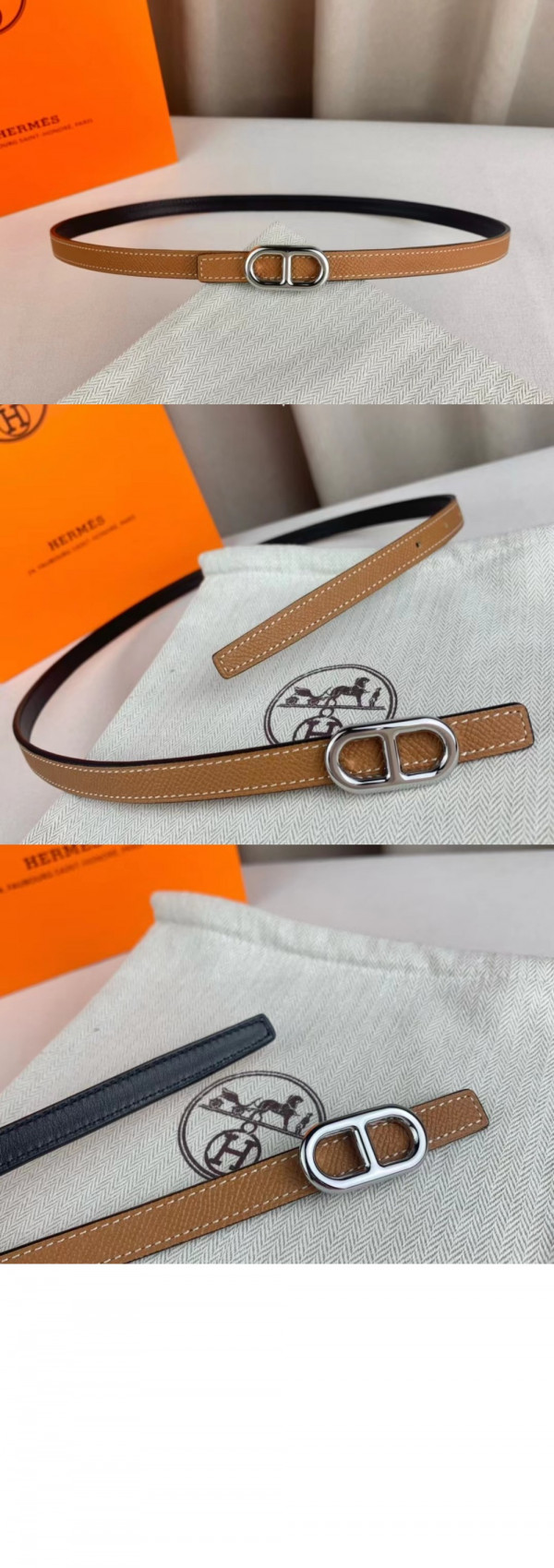 에르메스 Maillon H 버클 양면 가죽 벨트