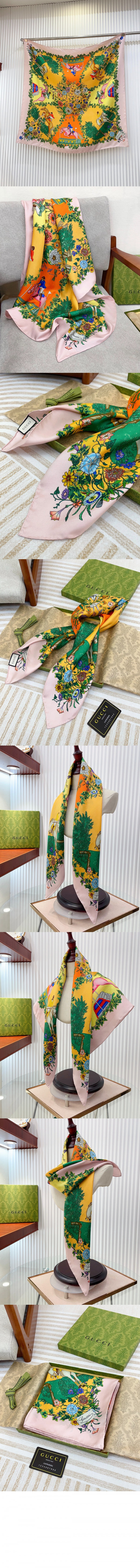 구찌 올오버 플로라 프린트 실크 까레 810870