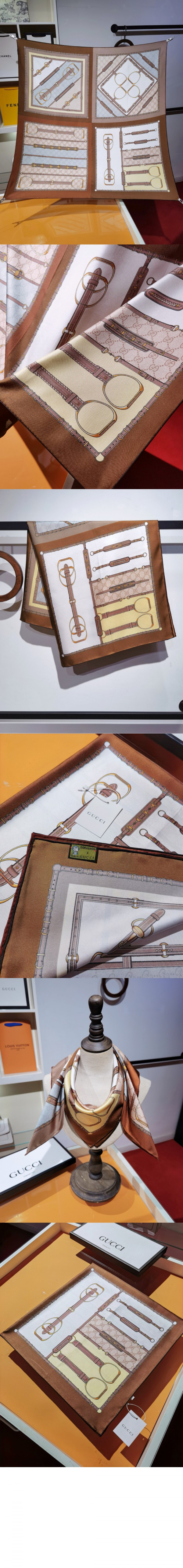 구찌 헤리티지 프린트 실크 스카프 786222