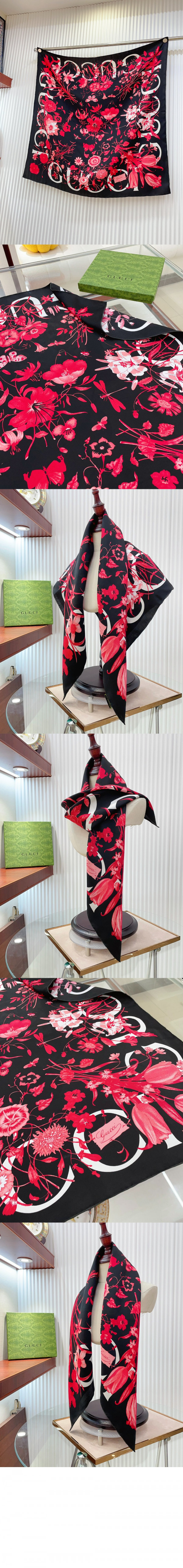 구찌 플로라 프린트 실크 까레