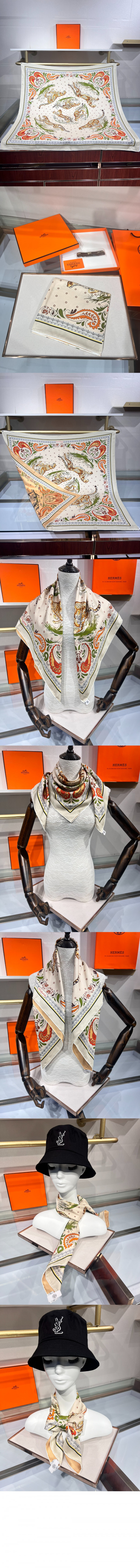 • 에르메스 Guepards Bandana 더블 페이스 스카프 90