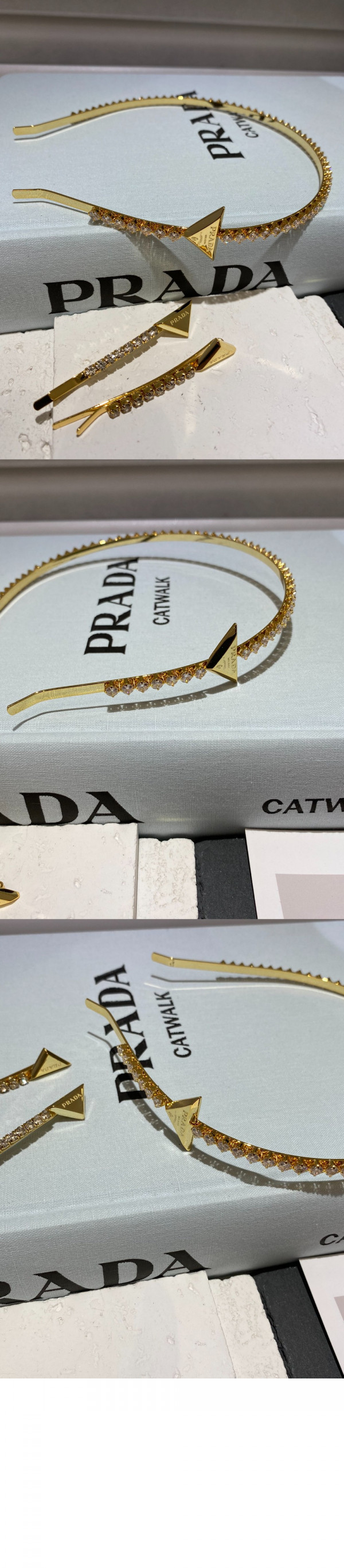 • 프라다 장식이 있는 브라스 헤어밴드 1IH048