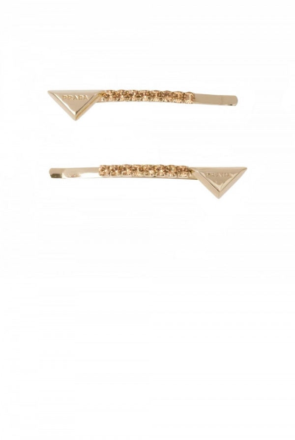 프라다 장식이 있는 브라스 헤어 클립 1IF098