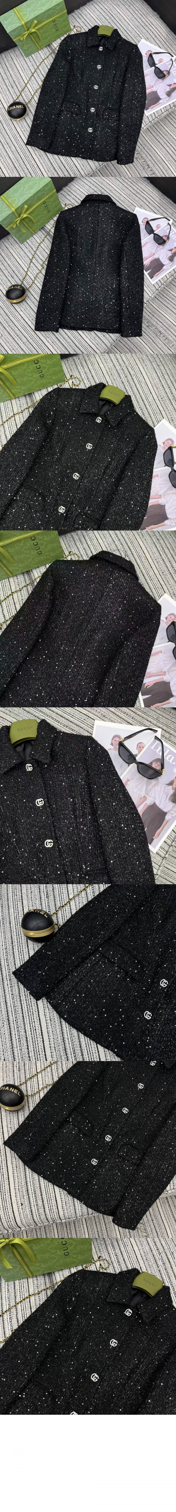 구찌 시퀸 라메 트위드 재킷