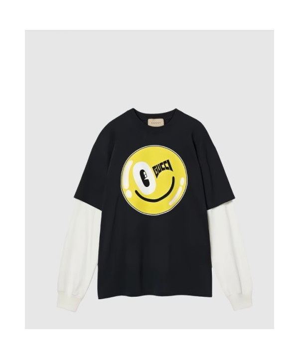 • 구찌 니트 면 프린트 티셔츠