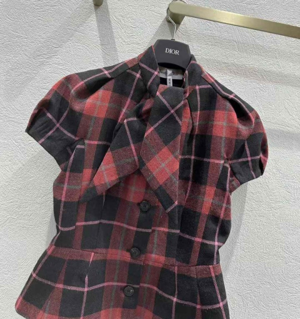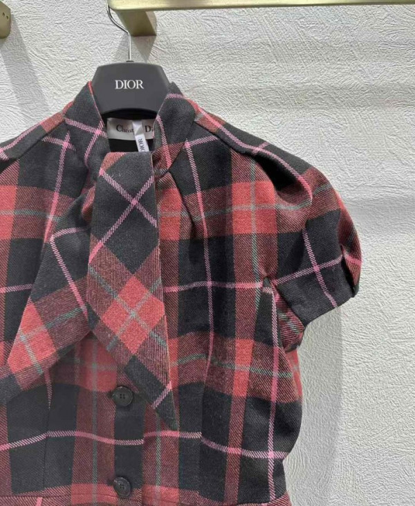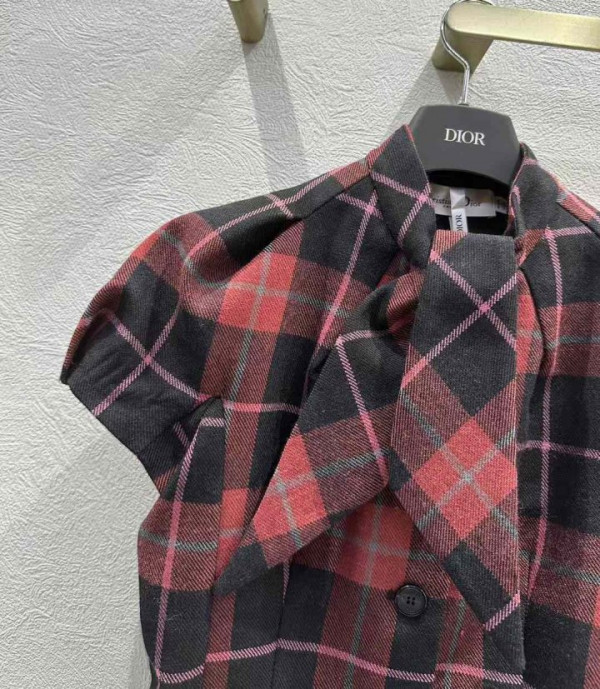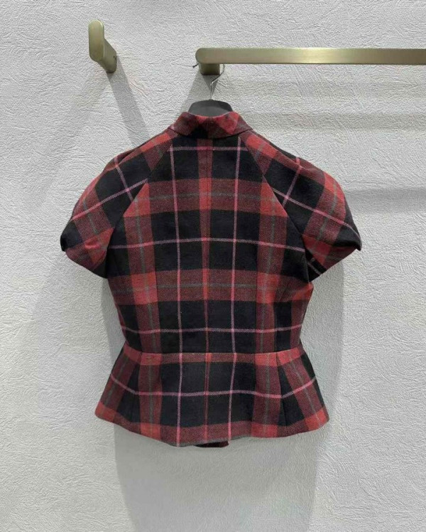 디올 체크 무늬 루즈핏 반팔 자켓