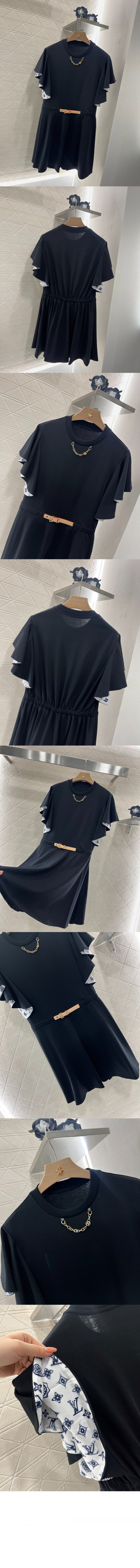 루이비통 플라운스 슬리브 벨티드 드레스