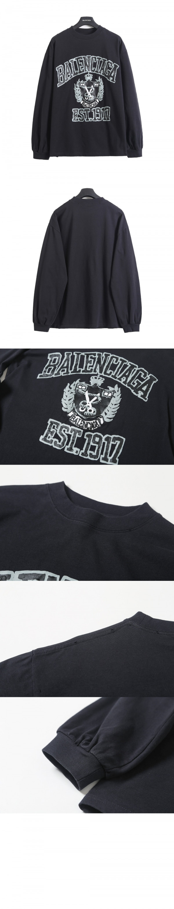 발렌시아가 컬리지 로고 프린트 롱슬리브 티셔츠