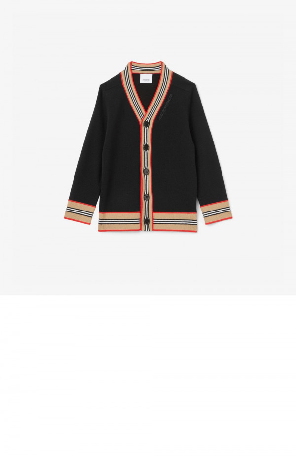 버버리 아이콘 스트라이프 트리밍 울 가디건