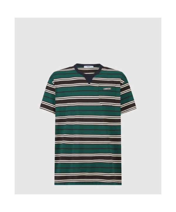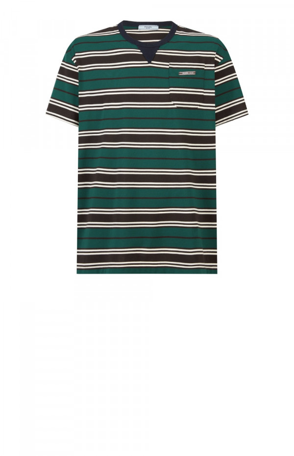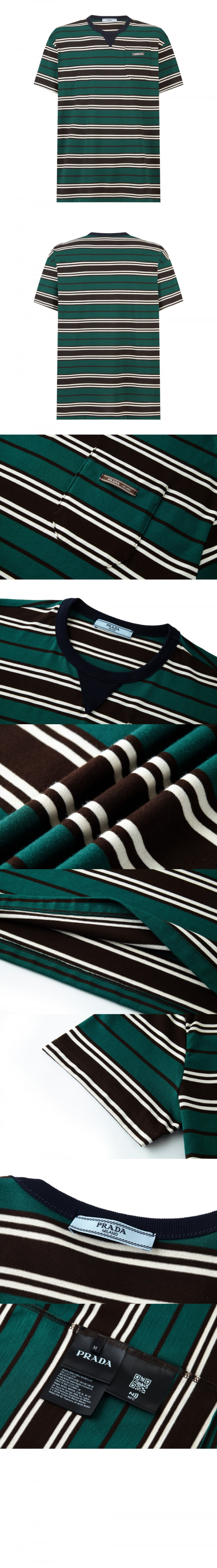 프라다 스트라이프 라일 코튼 티셔츠