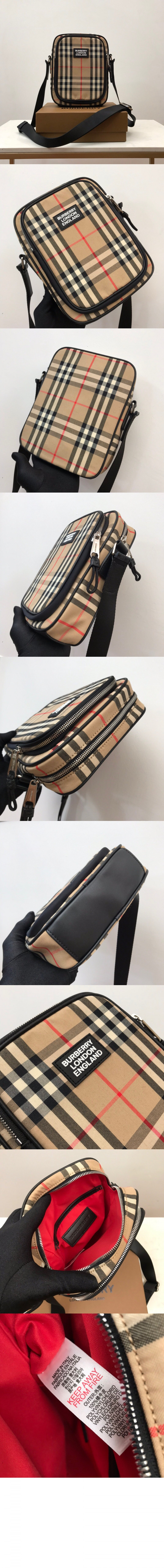 버버리 체크 레더 크로스바디백 80233811