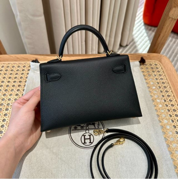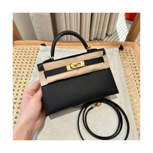 • 에르메스 미니 켈리2 블랙 앱송 금장 19cm