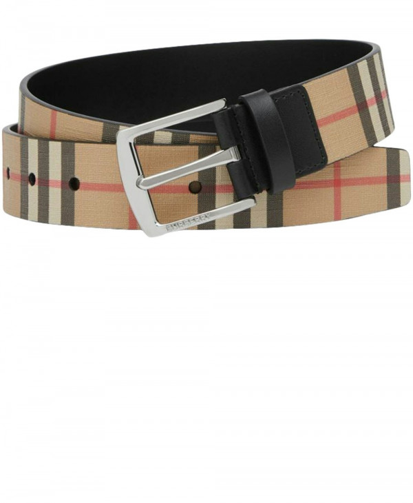 빈티지 체크 및 가죽 벨트 80527821