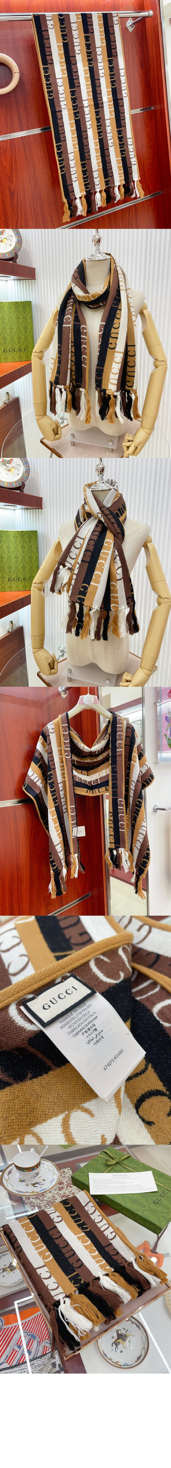구찌 GG 자카드 패턴 니트 스카프 634166