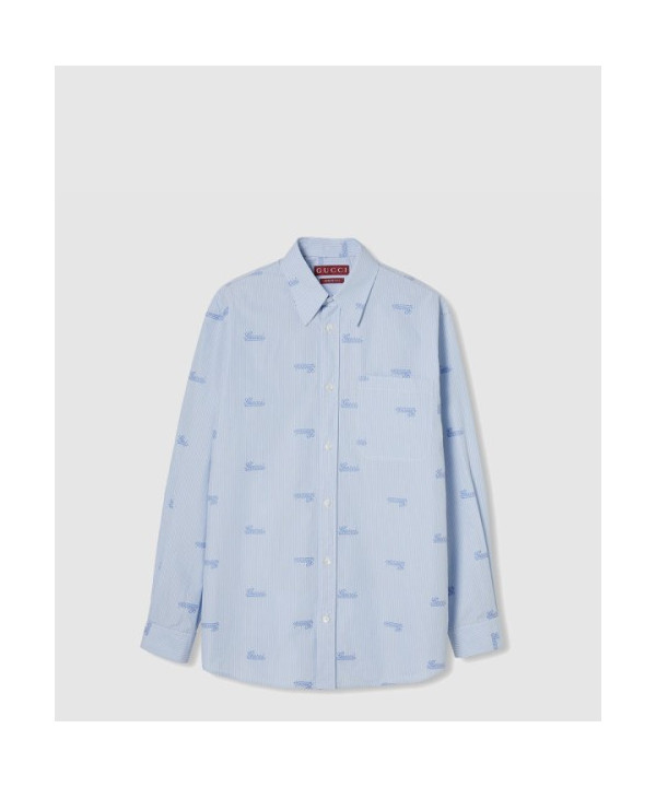 • 구찌 자수 스트라이프 코튼 셔츠