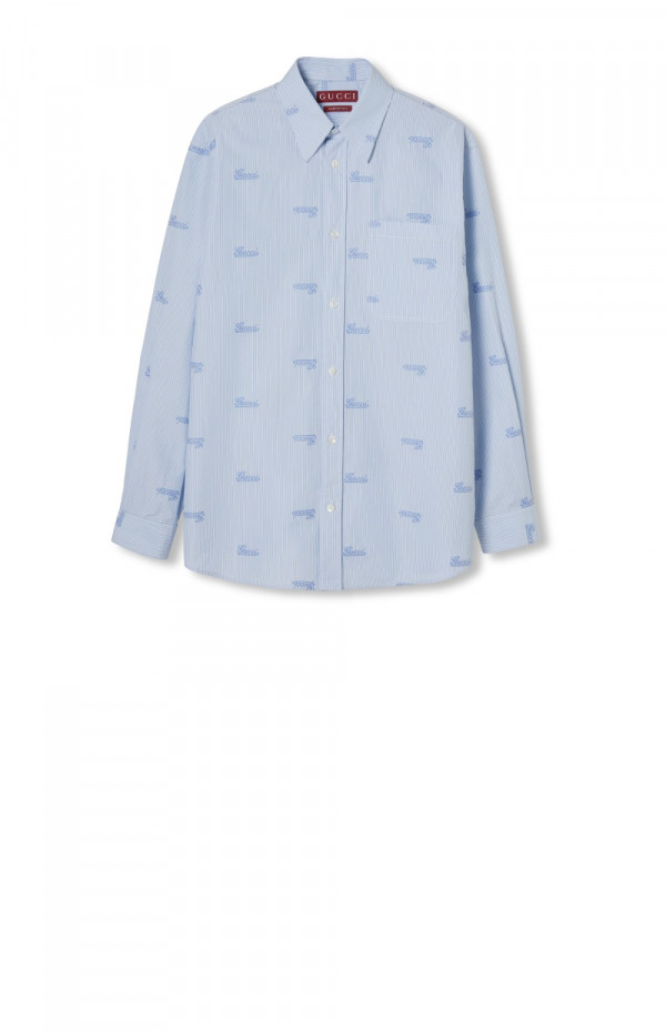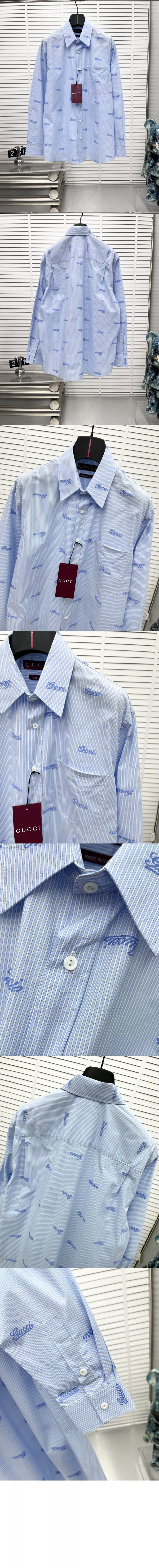 구찌 자수 스트라이프 코튼 셔츠