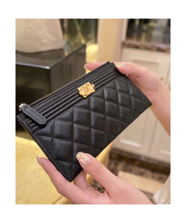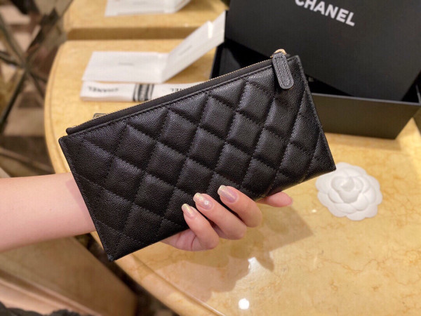 샤넬 슬림 장지갑 파우치 캐비어 금장 A81254