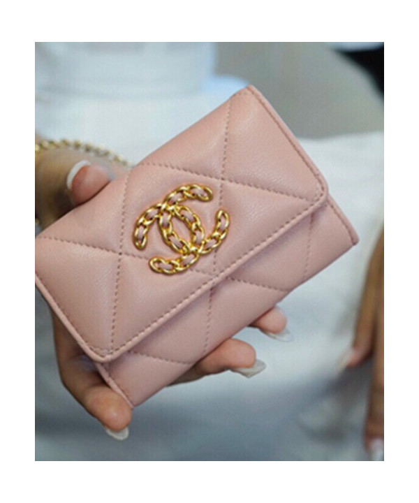 샤넬 19 플랩 카드지갑 램스킨 금장 핑크 AP1790