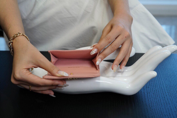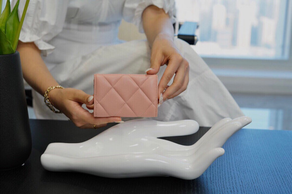 • 샤넬 19 플랩 카드지갑 램스킨 금장 핑크 AP1790