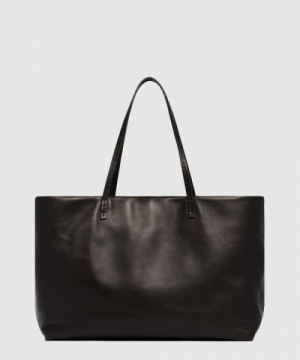 • 더로우 뉘앙스 블랙 레더 토트백 W1727L
