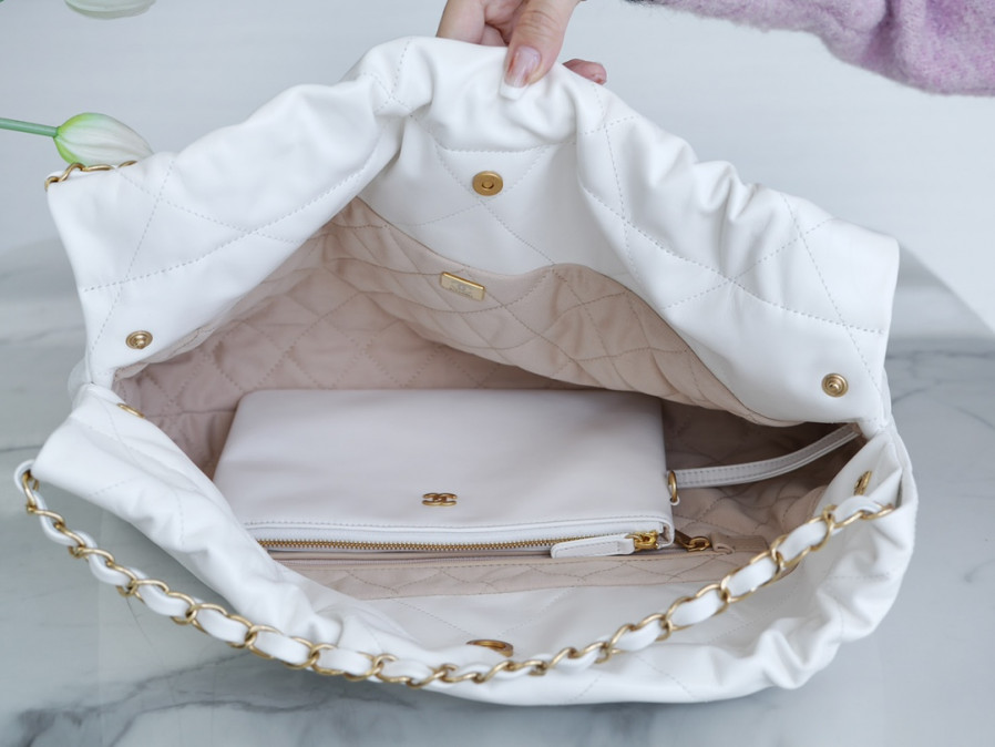 샤넬 22백 가로 버전 화이트 금장 > WOMAN