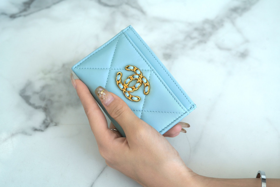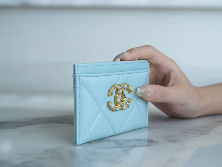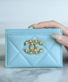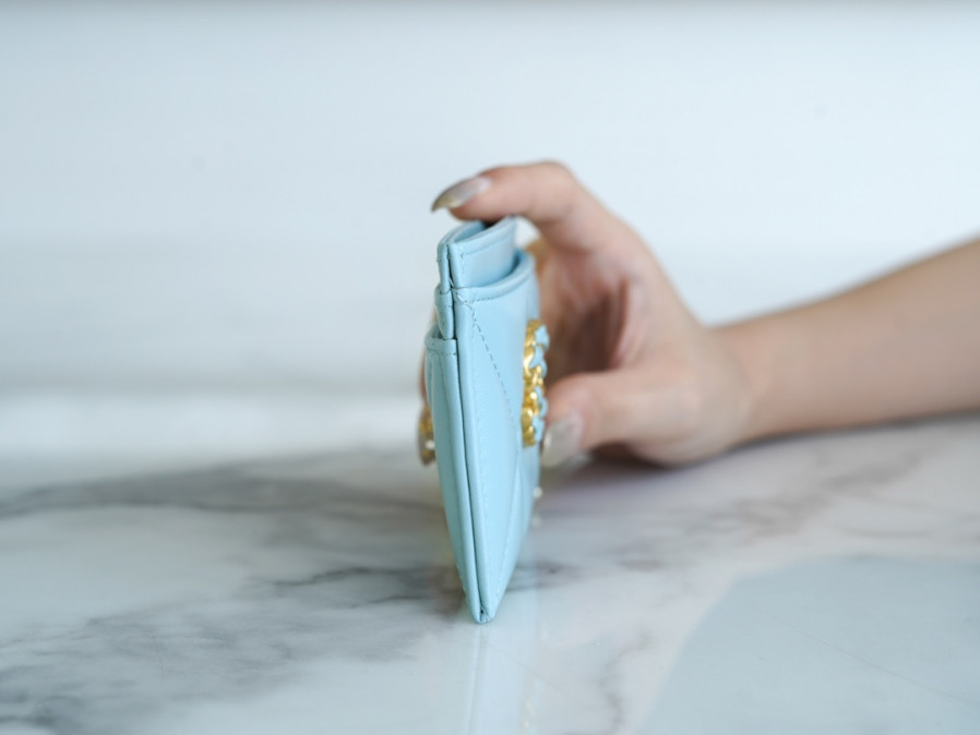 • 샤넬 카드 지갑 램스킨 금장 스카이 AP1167