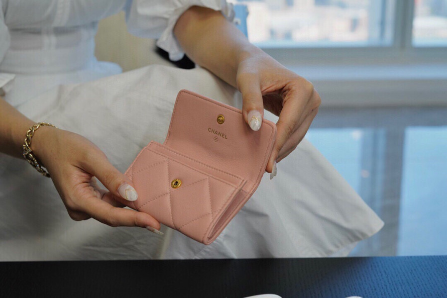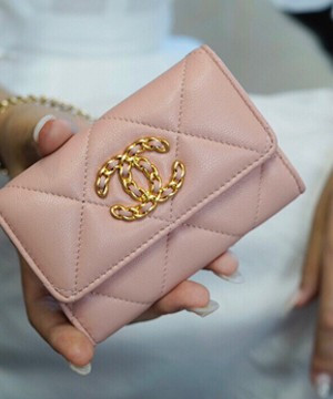 • 샤넬 19 플랩 카드지갑 램스킨 금장 핑크 AP1790