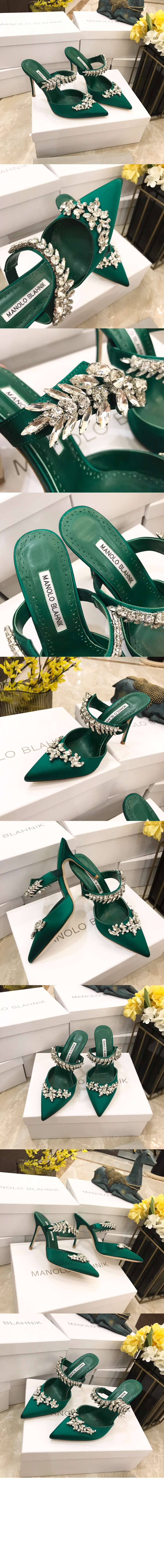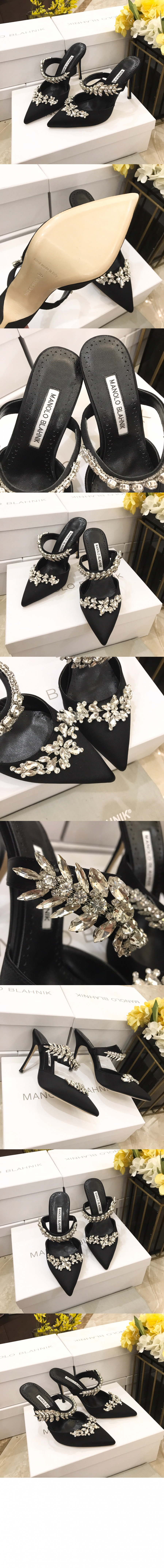• 마놀로블라닉 행지시무 새틴 쥬얼 뮬