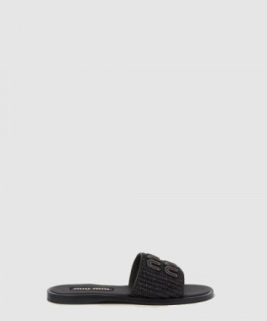 • 미우미우 라피아 효과 우븐 패브릭 슬라이드 5XX644