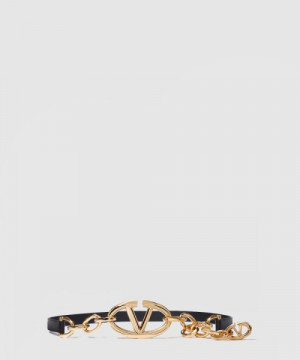 • 발렌티노 브이로그문 광택 소가죽 체인벨트