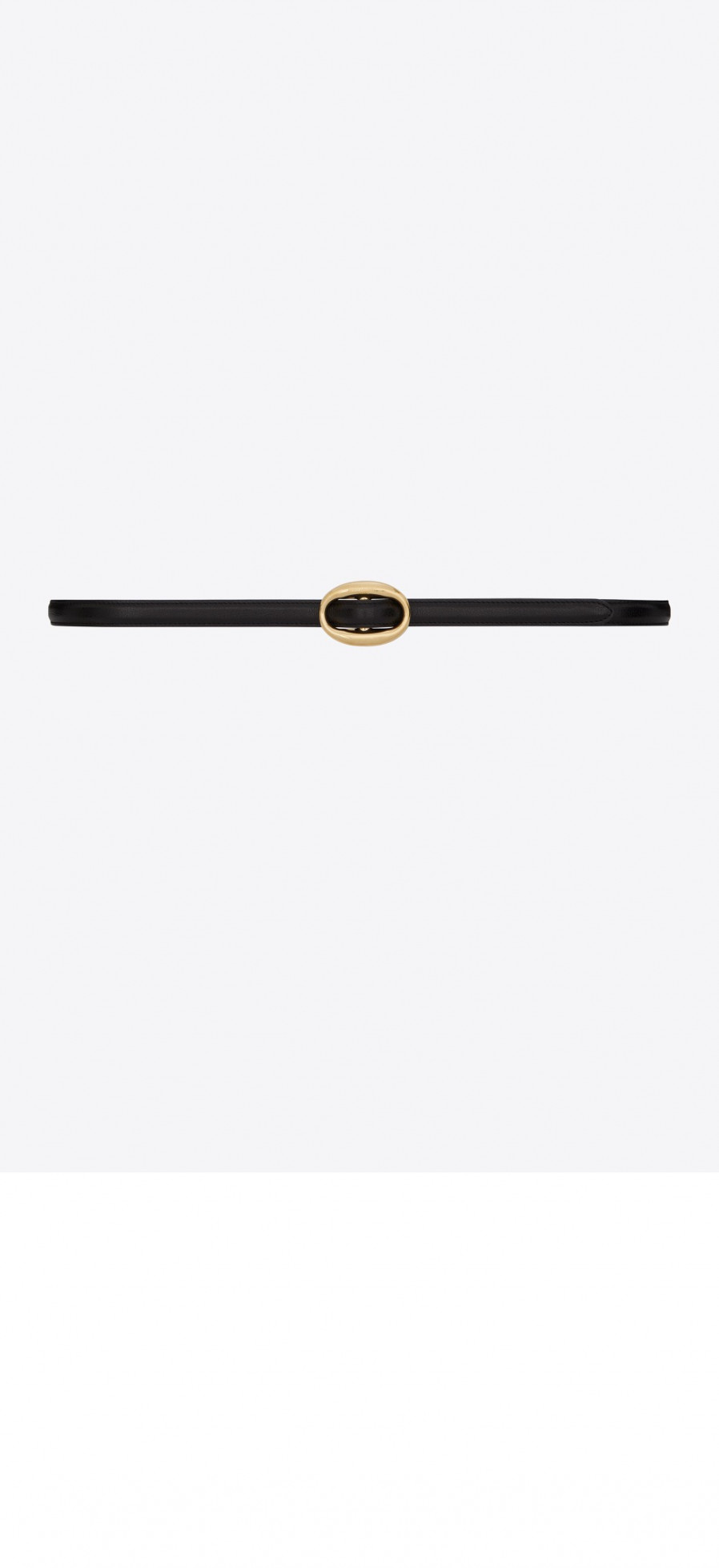 생로랑 부드러운 가죽 소재의 타원형 버클 슬림 벨트 756409 > WOMAN