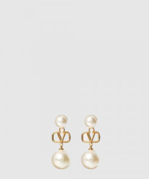 • 발렌티노 크리스털 장식 브이로고 시그니처 이어링