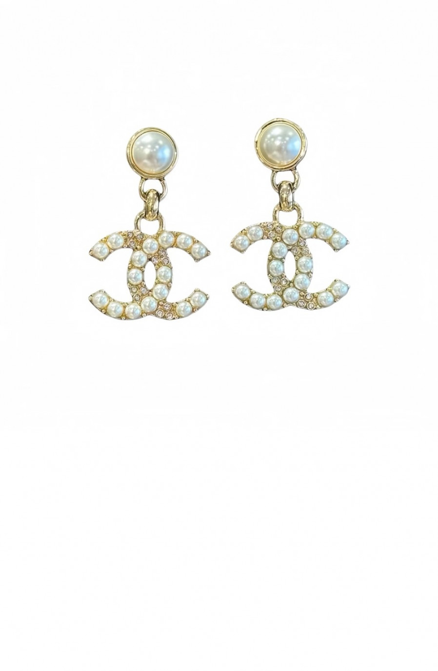 • 샤넬 펄리 화이트 & 크리스탈 귀걸이 AB3078