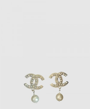 • 샤넬 펄리 화이트 & 크리스탈 귀걸이 AB3078