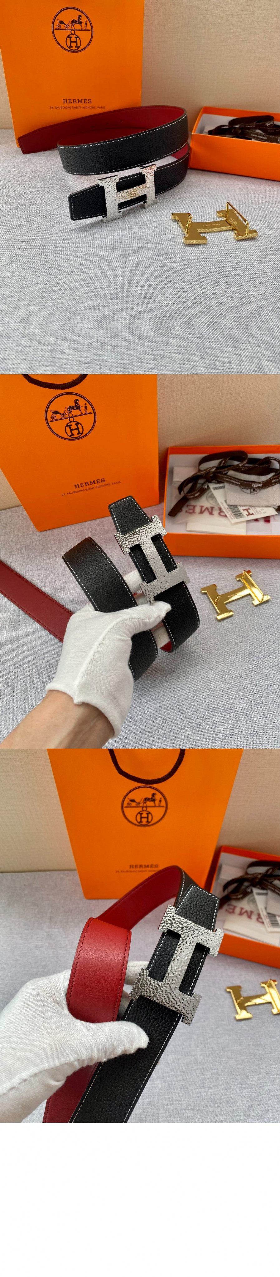 에르메스 H Martelee 버클 & 양면 가죽 벨트 > MEN
