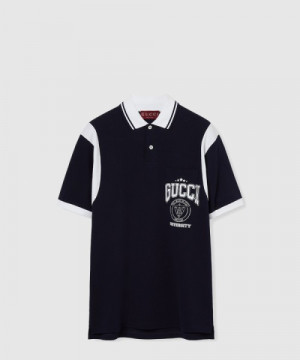 • 구찌 코튼 피케 프린트 폴로 셔츠