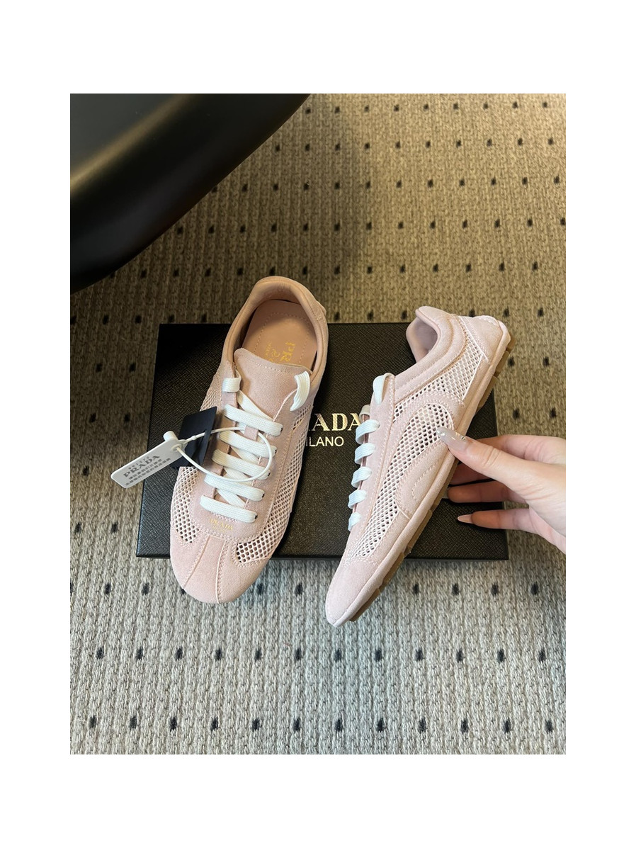 프라다 여성 몬테카를로 리에디션 2005 스웨이드 메쉬 스니커즈 1E247OFD_PINK > WOMAN