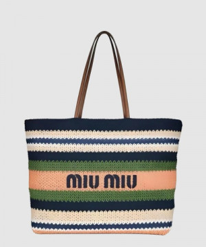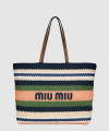 • 미우미우 라피아 앤 코튼 토트백 5BG228