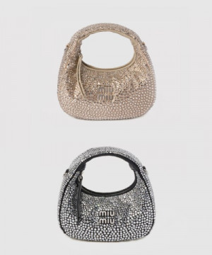 미우미우 완더 세틴 크리스털 미니 호보 백 5BP078 > WOMAN