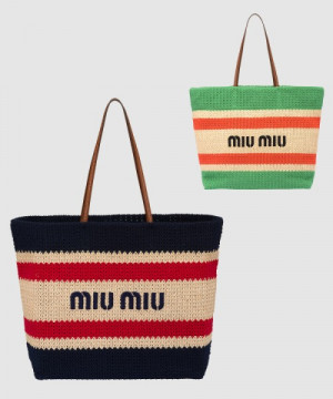 • 미우미우 라피아 앤 코튼 토트백 5BG228