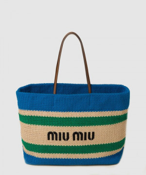 • 미우미우 라피아 앤 코튼 토트백 5BG228