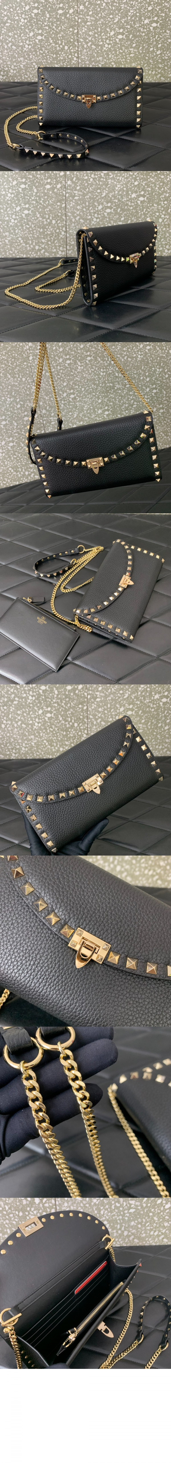발렌티노 락스터드 그레인 송아지 가죽 체인 지갑