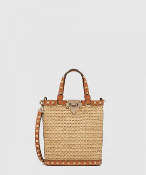 발렌티노 미니 락스터드 라피아 숄더백 > WOMAN