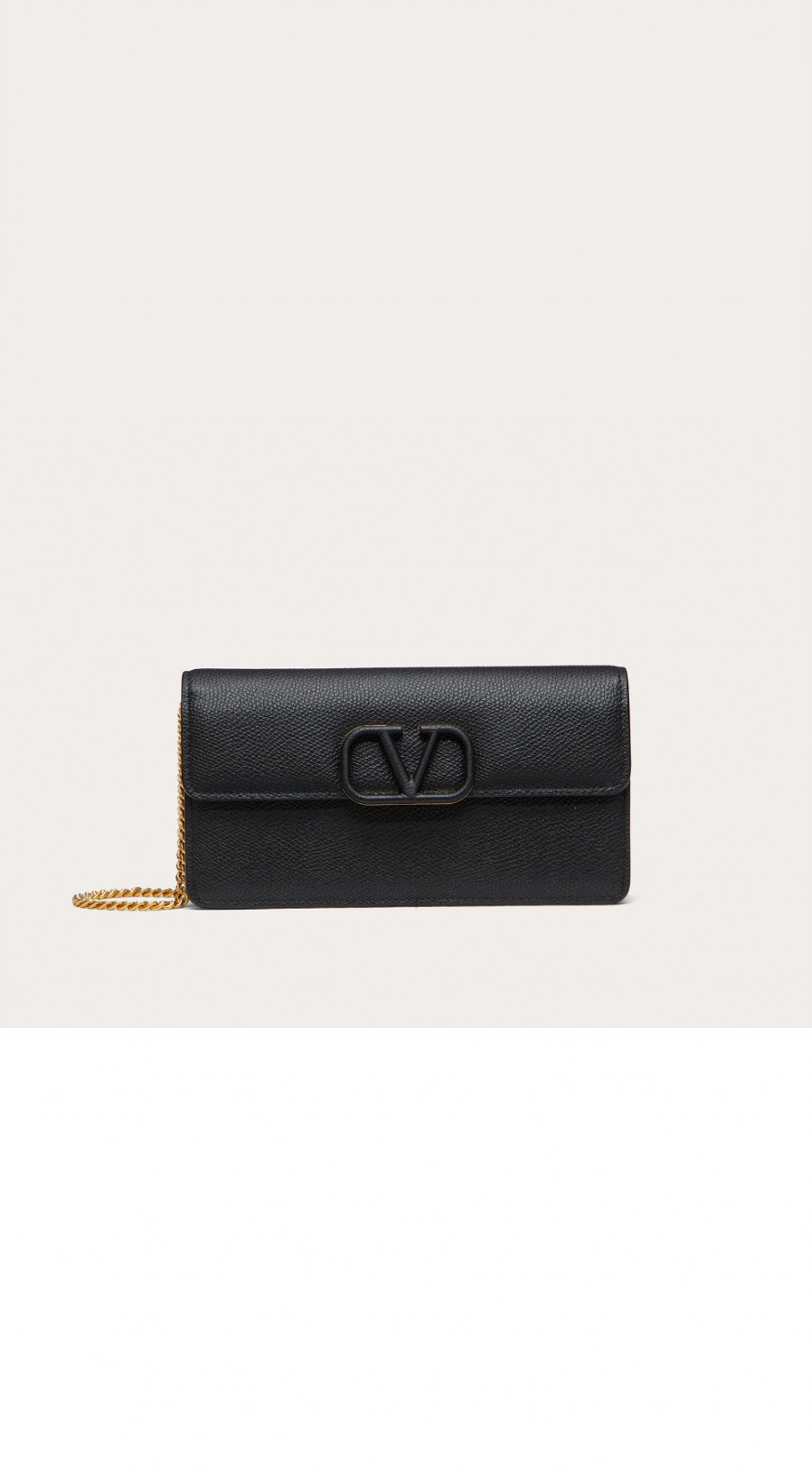 발렌티노 VLogo 시그니처 메탈릭 그레인 카프스킨 체인 지갑 > WOMAN