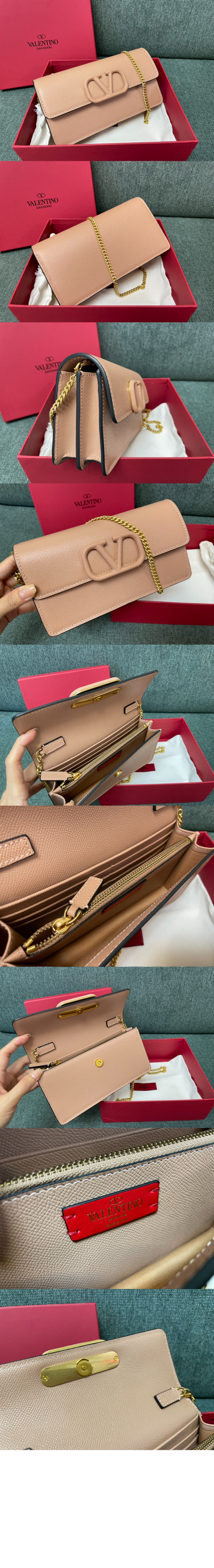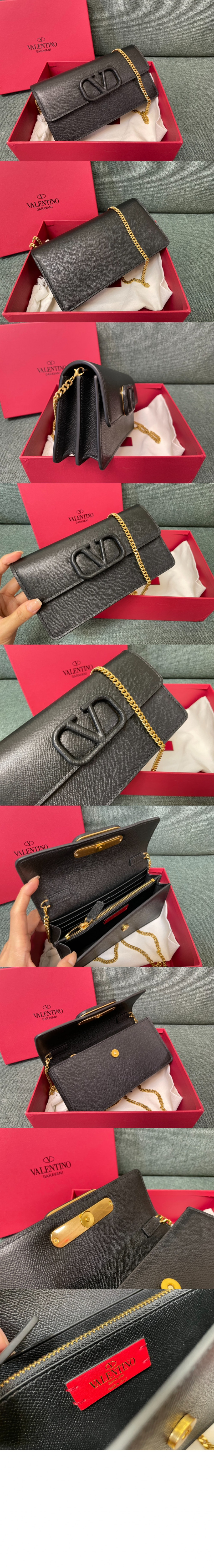 발렌티노 VLogo 시그니처 메탈릭 그레인 카프스킨 체인 지갑 요약정보 및 구매
