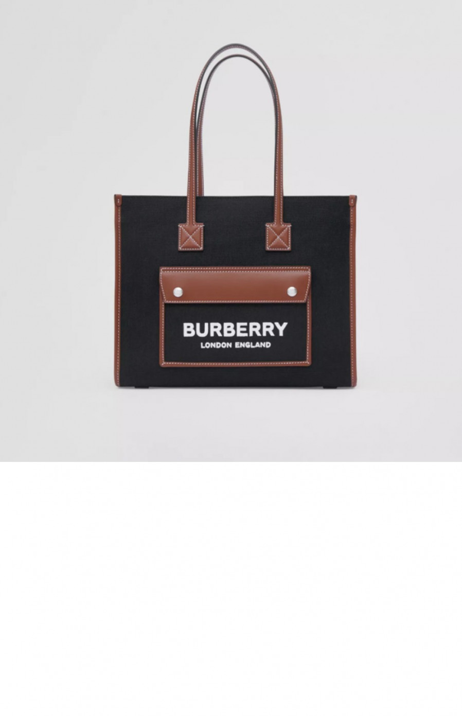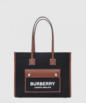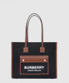 • 버버리 투톤 캔버스 레더 스몰 토트 80576001