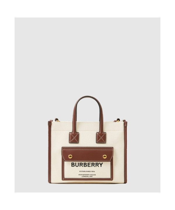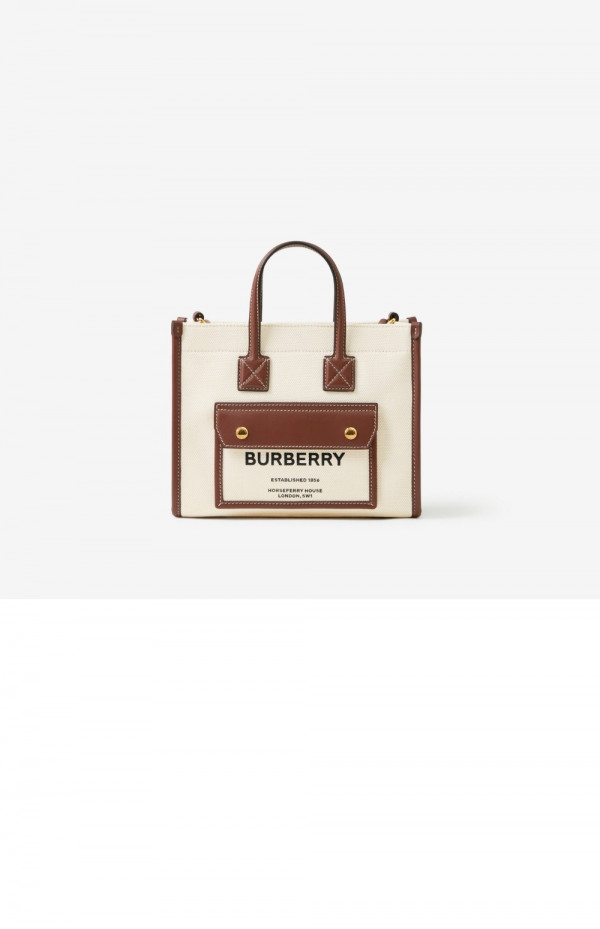 버버리 미니 투톤 캔버스 토트백 80441431